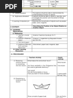 The document outlines the parts of a lesson plan including curriculum content, standards, learning resources, teaching procedures, and evaluating learning. It provides the structure for developing a science lesson plan for a specific grade level and quarter.